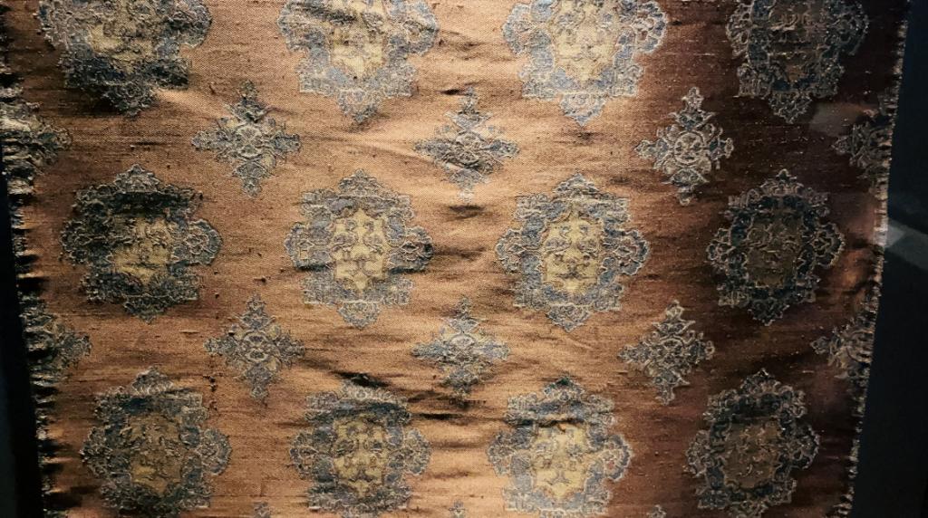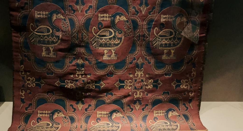 花鸟纹锦(唐 复制)原件出土于新疆吐鲁番阿斯塔那