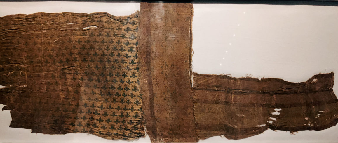 塔形纹锦(战国 复制)原件出土于湖北江陵马山一号楚墓