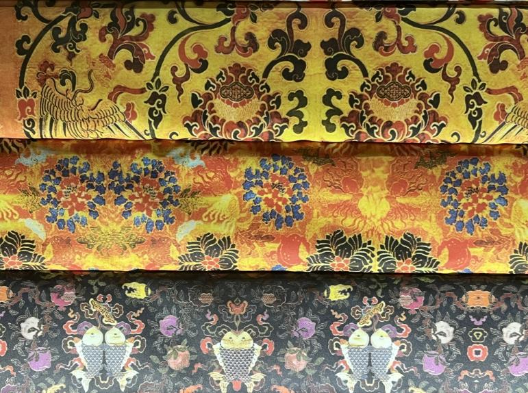 有的以自然景物为题材,如山水、花鸟、鱼虫等,它们栩栩如生,仿佛将大自然的美丽景色浓缩在了一方丝绸之上。有的则以神话传说、历史故事为蓝本,通过巧妙的构图和细腻的线条,将那些遥远而神秘的故事呈现在人们眼前。这些纹样不仅具有极高的艺术价值,更是历史的见证,是民族文化的载体。