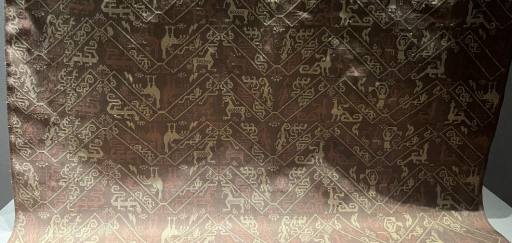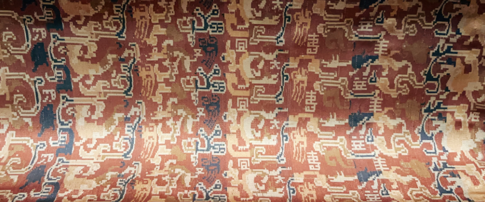 舞人动物纹锦(战国 复制)原件出土于湖北江陵马山一号楚墓